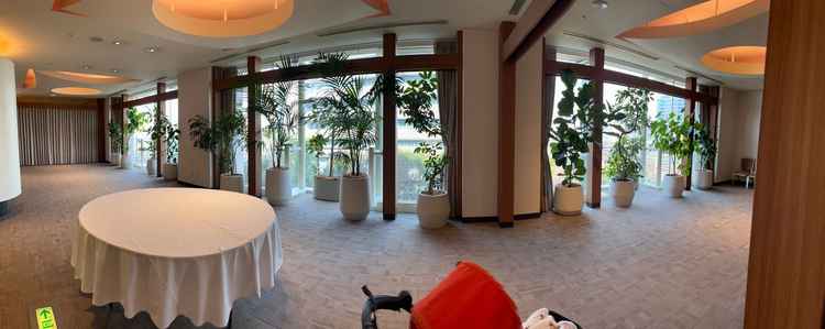 挙式会場は、さいたま新都心の街並みを一望できる開放的な空間で、訪れた瞬間に心が奪われました。チャペル内はナチュラルな木目調が基調となっており、天井が高く、自然光がたっぷり差し込む設計がとても印象的でした。ホワイトと木の温かみのある色合いが融合し、洗練された中にも温もりが感じられる空間です。座席の間隔にもゆとりがあり、ゲストにも配慮された造りになっています。バージンロードも程よい長さで、緊張感を和らげてくれそうな雰囲気でした。ピアノ、ハープなどの生演奏も素敵で当日の演出がより感動的になるだろうと感じました。