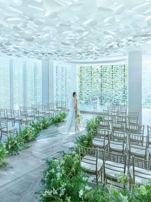オブジェが煌めき、自然光が当たるとキラキラと上品に輝くパール感。今までに見たことのないような世界観は、心を引きこむ圧巻の景色へとゲストを誘う。