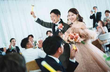 お色直しはゲストもワクワクする時間!ご新婦様のカラードレス宛てをペンライトで行い、パーティ会場がまるでライブ会場のように、ノリノリの音楽に乗せてゲストも大盛り上がりするシーンへ♪ 一緒に歌っている人もいれば、誰よりもペンライトを振って楽しんでいる人も、素敵な写真を撮ってくれている人も・・・それぞれの楽しみ方で、気づけば会場に一体感も生まれる最高の演出!