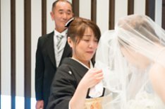 挙式の入場はお父様と・・・・ベールダウンは皆様に見守っていただきながらチャペルの中で・・・お2人の指輪を置くリングピローは新婦様のお姉様の手作り。挙式入場される時の新婦様のお父様の嬉しそうな表情は今でも忘れません。挙式後ゲストの皆様へのサプライズとしてぬいぐるみトス!キャッチした方へお2人も大好きなディズニーのチケットをプレゼント!大変盛り上がるイベントでした!