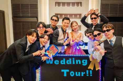 せっかく準備するならば。とことんこだわり、テーマ性のある1日を。 まず用意したのは「ファンサうちわ」をイメージした席札。 ゲストの名前と共に好きなものがプリントされておりました。 そしてペンライトで彩られた会場に「トロッコ」に乗って2人が再登場!インパクト抜群、ライブ感の溢れる瞬間です。 周りにはサングラスをつけた友人=SPもいらっしゃいました。
