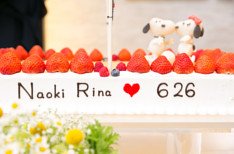 新婦様が大好きだったキャラクターを新郎様もお付き合いの中で好きになったそう。大好きなキャラクターもコーディネートアイテムに取り入れる打合せをしました。中でも、ウェディングケーキはバレーとキャラクターとお二人オリジナルロゴを入れて世界に一つだけのウェディングケーキを考えました。側面に入れる名前はオリジナルカクテルのタイトルとしても使用してゲストのワクワク感を誘いました。