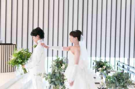 新婦様とお父様の仲が良くない事がお打合せで発覚。お父様とバージンロードを歩く事も懸念されておりました。それでも結婚式の意味、本質をお伝えし、直接お手紙を読むのではなく、バックストーリーにて親御様への感謝を伝えました。ただ、やはりしんみり終わってしまうのはイメージではなかった為、ワンモアチアーズにてゲストの皆に感謝を伝えながら退場する事をご提案。新婦お父様とも笑顔で乾杯して最高の雰囲気で締まりました