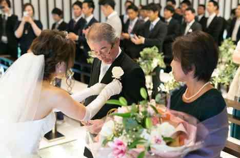 挙式は今まで育てて頂いた家族を招いて 披露宴は友人様を中心に1.5次会パーティにてゲストを招待しました。 挙式のシーンでは両親への感謝の言葉とともに花束を贈呈をしました。ご家族様との繋がりを感じるステキなワンシーンとなりました。