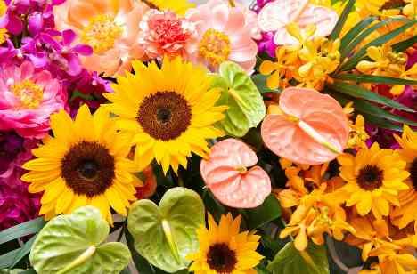 披露宴はお2人のお好きなものをイメージして会場内を装飾していただきました。 会場内のお花は大好きなスティッチをイメージして南国風のお花で彩りました。 釣りやディズニーにちなんだ演出を入れ皆様にも楽しんでいただきました。