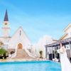 【チャペル見学】スペインのアンダルシアに実在する教会をモチーフにした、ロイヤルブルーのバージンロードが印象的な本格大聖堂「エンカルナシオン教会」の見学。天井まで広がるむ自然光に包まれる挙式を体感!