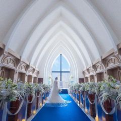 【チャペル見学】スペインのアンダルシアに実在する教会をモチーフにした、ロイヤルブルーのバージンロードが印象的な本格大聖堂「エンカルナシオン教会」の見学。天井まで広がるむ自然光に包まれる挙式を体感!