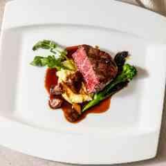 【スモークサーモンのピザ キャビアを添えて】【黒毛和牛フィレ肉のグリエ ポルチーニ茸を入れたマディラソース 旬の青菜とトリュフ風味のポムピューレ】をご用意しております。