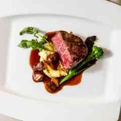 【スモークサーモンのピザ キャビアを添えて】【黒毛和牛フィレ肉のグリエ ポルチーニ茸を入れたマディラソース 旬の青菜とトリュフ風味のポムピューレ】をご用意しております。