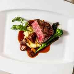 【スモークサーモンのピザ キャビアを添えて】【黒毛和牛フィレ肉のグリエ ポルチーニ茸を入れたマディラソース 旬の青菜とトリュフ風味のポムピューレ】をご用意しております。