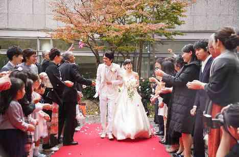 ガーデンの木々たちが紅葉して 新郎新婦をより輝かせてくれました。 真っ赤なバージンロードに赤く染まる木々をバックに挙げる挙式は本当に素敵でした。保育士の新婦様。子供たちを挙式のみに招待して一緒にフラワーシャワーをしました。 その後会場内に入るとお菓子まきがスタート! 子供たちは大喜びでお菓子まきは大成功でした☆ 素敵です。