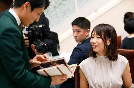 新郎新婦を繋ぎ合わせてくださったご友人様からのスピーチで発覚! なんとご友人様、新郎新婦から別のタイミングでまったく同じアルバムをプレゼントされていたんです★ その際に「この二人は結婚するな~」と思ったとのこと。 思わぬ偶然にゲストだけでなく新郎新婦もびっくりされていました!