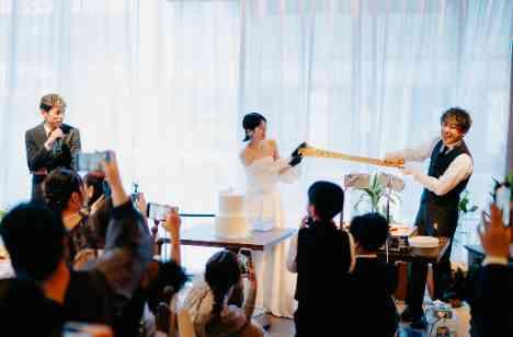 ”ゲストに楽しんでほしい”という想いも大切にされていたおふたり。そんなおふたりがお届けるするのは、日頃から高みを目指して打ち込まれている飴細工のパフォーマンス。 限られている時間の中で次々に作られていく飴細工のパーツを1つずつ丁寧にケーキにトッピングをし、今日だけの、世界に1つだけのウェディングケーキを創り上げられた時間は思わず会場全体が釘付けでした。