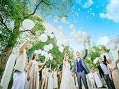 - 青空と緑を望むガーデン空間でアフターセレモニー。ふたりの幸せを願う演出の数々にみんなの笑顔が溢れます