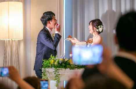 ご新婦様が主役のシーン“ファーストバイト”ご新婦様がすくったサイズはなんとBIGサイズ!!お口にはいるのでしょうか!?とゲストがドキドキの中、ご新郎様は大きなお口でケーキをパクリッ!!お口からあふれた分も手で受けとめて全部召し上がられました♡ご新婦様からのあふれんばかりの愛情を感じられる心温まるシーンでした♡