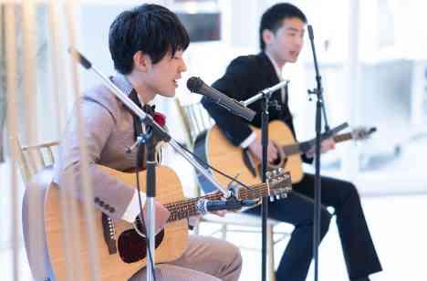 大切な記念日にお越しいただいたゲストにサプライズを行いたいとの新郎様。学生時代のご友人様と一緒に引き語り演奏を行いました♪新郎様の優しい歌声にご友人様との息のあったギター演奏がステキなハーモニーとなり会場に響き渡り、ゲストの皆様も大盛り上がり!!ノリノリで手拍したり、演奏に聞き入ったり…とても楽しまれているご様子でした♡