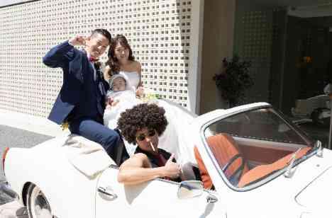 ゲストの皆様をあっと驚かせたいということで披露宴の入場場所に選ばれたのは“テラスからのオープンカー 登場”!!!運転はご新郎様の仲のいい同僚の方へお願いされました♪カツラやサングラスなどのアイテムも着用されて、かっこよくキメていただいています☆入場のシーでは、音楽に合わせてオープンカーに乗ったおふたりが登場しゲストから大歓声が♪