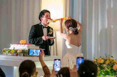 おふたりへ大注目のシーン「ファーストバイト」新婦様から新郎様への一口でご用意されたアイテムはなんと...とても巨大なスコップ!!!スコップいっぱいにすくったケーキに新郎様は食べれるかなと少し心配のご様子…ゲストの皆様からの「頑張ってー!」という声援の中、大きな口を開けてスコップのケーキをパクリッ!お顔いっぱいにクリームを付けてご新婦様からの愛情を一心に受けられました♡