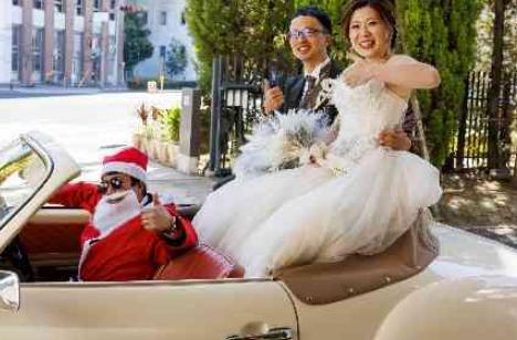 ご入場にはドキドキとワクワクを取り入れたい! おふたりを披露宴会場まで連れて行ってくださったのは普段は乗っている側の”サンタさん”!の格好をした、ご新婦様のお兄様でした!クリスマスとお日にちが近かったので、コスプレをしていただき、オープンカーの運転手をお願いしました。会場は大盛り上がり!ご親族様にもご友人様にも楽しんでいただけるサプライズ入場です♪