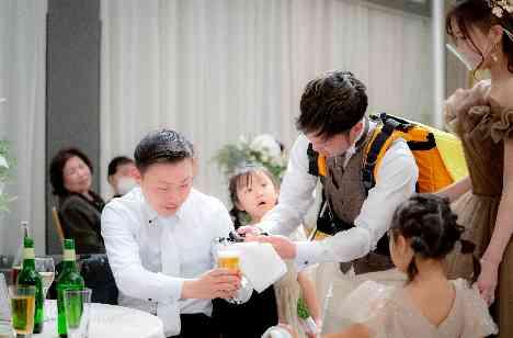 ゲストの皆様になにかおもてなしがしたい!そんな思いをカタチにしたのが、ビールサーバー! 新郎様がビールサーバーを背負い、新婦様と共にビールを注ぎに回ります♪ビールサーバーは、披露宴の中でゲストの皆様とコミュニケーションをとりたい!そして、おもてなしもしたい!という新郎新婦様にぴったりの演出です!アルコールがお好きな方も是非♪
