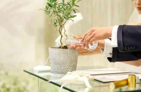 オリーブの木は”夫婦の木””幸せを運ぶ木”とも呼ばれております♡受付スペースにオリーブの木を飾り ゲストの皆様には土を植木鉢に入れていただきます。 そして挙式の際に新郎新婦様が仕上げをいたします。 平和を象徴するオリーブの木を植えることは”結婚式に来てくださった皆様が、これからも平和で幸せな日々が過ごせますように”という素敵な意味も込められております♪