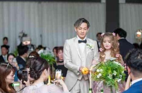 打合せ当初からのおふたりのご希望であった、 「ゲストひとりひとりが楽しめるように」というテーマから、 キャンドルサービスを進行に組み入れました。 キャンドルサービスとは、ゲストテーブルを回り、テーブル上のキャンドルへあかりを灯します。 キャンドルのあかりは幸せを運ぶと言われており、 ゲストへの感謝や幸せを届ける気持ちを表すものです。 当日は、会場内は温かい空気に包まれました。