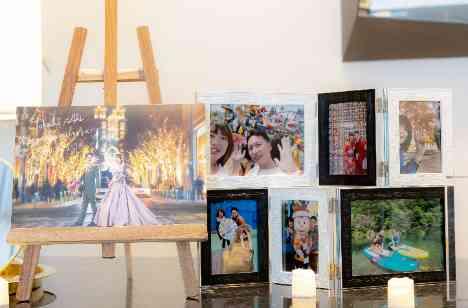 おふたりのお受付に飾るのは、 お写真やテーマに沿ったグッズ^^ ウェルカムボードは特にこだわりで、 前撮りで撮影したものをウェルカムボードとして 当日用意しました! 受付はおふたりらしい空間で、 おふたりのグッズを飾ることで オリジナリティあふれる空間になります。 ルシアスガーデンでは、かしきりだからこそ お好きに飾っていただくことがでます♡