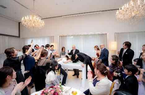 一生に一度の結婚式では、 親御様にもご参加いただき ジャケットセレモニー&ベールダウンの儀式を おこないました。 王道な演出の中ではやっぱりこれが一番! 今までの記憶を思い返しながら親御様と向き合って おこなう演出は、今までの感謝の気持ちとともに、 これからの決意を新たにする素敵な時間として ご案内しています。