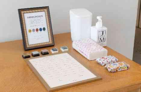挙式のお時間までゆっくりとお待ちいただけるよう、 ウエルカムスペースにはお写真やご披露宴の際に使用するアイテムをたくさん飾りました。 その中でも、おふたりとゲストの皆様で完成させるウエディングツリーをご用意!! おふたりが考えたテーマは”結婚生活の中でいちばんたいせつなことは?” 皆様にはいちばんたいせつだと思った印を押していただき、世界にひとつだけのウエディングツリーを完成させました♡