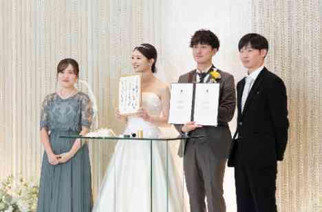結婚誓約書への立会人代表サインに おふたりが選ばれたのは新婦”専門時代の友人”新郎”幼馴染” 事前にはお伝えせず当日のサプライズに! お名前を呼ばれたおふたりはびっくりした様子でしたが、 誓約書にしっかりとサインしていただきました♪ また、受付で飾っていたウエディングツリーもゲストの方にご協力いただきついに完成! 思い出のものがまたひとつ増えました!