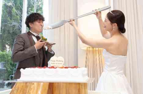 新婦様から新郎様へのファーストバイト。 登場したのは見たことがないほどの大きさをした”Bigスプーン” 新婦様の愛情分たっぷりとケーキをのせて 大きな一口(^^) 新郎様も新婦様からの愛情を口いっぱいに受け取りました! 皆様の顔には思わず笑みが溢れており、 幸せいっぱいの空間となりました♪