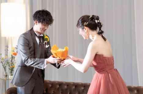結びの進行に進みかけたその瞬間、 新婦様へ日頃の感謝の気持ちを込めて 新郎様よりサプライズをご用意。 日頃、恥ずかしくて感謝の気持ちを伝えられないため この機にと新郎様よりメッセージと花束をお渡しいただきました。 会場内が感動に包まれ、 おふたりにとって一生わすれられない思い出となりました♡