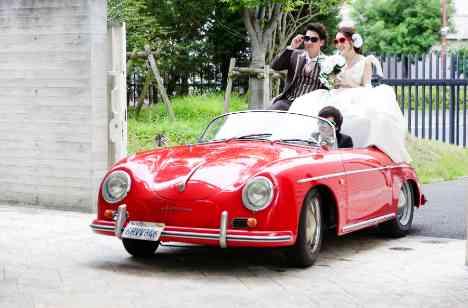 新郎友人の運転によるオープンカーでカッコよく登場!3人でお揃いのオシャレサングラスをかけての登場に、会場内のゲストの歓声は最高潮に!インパクト大の入場シーン、ゲストからのフラッシュが止まらない!!!!