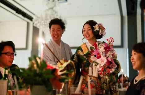 ゲストに楽しんでもらえる演出と料理スタイルにとことんこだわったふたり。 お子様の登場シーンにこだわったり、寿司職人を呼んでゲストの目の前でお寿司を握ってもらったりとおもてなしも重視♪「結婚式でお寿司が出て来るなんて!!」とゲストも大盛り上がりで大成功♪
