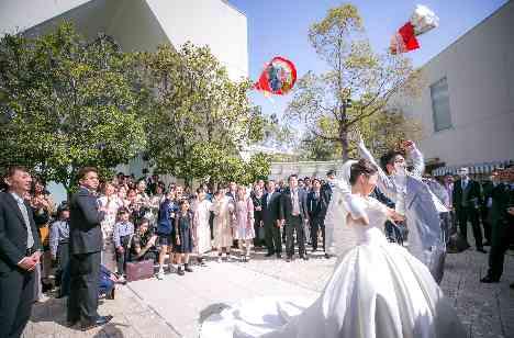 ゲスト全員参加型で行われるプレゼントトス☆おふたりらしいプレゼントを用意してゲストへのサプライズ演出にいかがでしょうか^^キャッチされたゲストとお写真もお取りし、思い出に残ること間違いなし!!