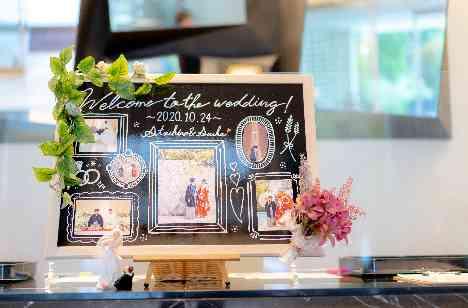 ルシアスガーデンでは受付スペースにお持ち込みグッズを自由に飾っていただけます♪手作りアイテムをそえるとグッとおふたりらしさが出ますよ⭐︎ゲストの皆様もおふたりが準備したアイテムを嬉しそうにご覧いただいています(^^)