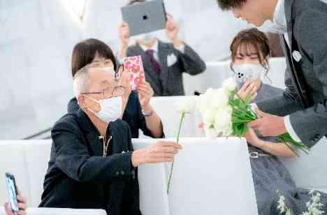 おふたりが選ばれた挙式スタイルは人前式。一緒に記念になることをしたい!ととのことで、ゲストと作り上げる「ブーケセレモニー」を取り入れました。ご友人様、そしてご親族様、親御様から手渡されるバラの花束をブーケにして新婦様へお渡しするプロポーズのセレモニーです♡