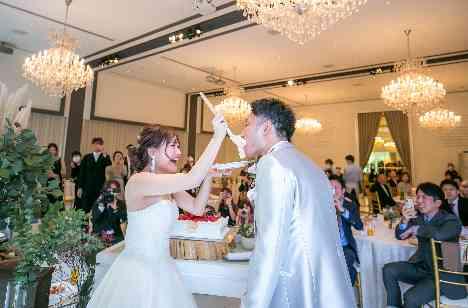 披露宴での人気演出!ケーキの食べさせあいっこファーストバイト!!ご新郎様に食べさせるサイズは愛情を表しているとも言われています♪この日のために用意した特別なスプーンで新婦様からとびきりの愛情をこめて♡