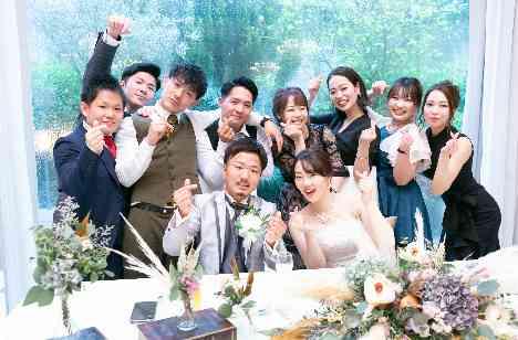 たくさんのゲストと記憶に残る時間を過ごしたい、とのおふたり。ゲストとお話をしたりお写真を撮ったりとアットホームな空間づくりをしました♪カメラに向かって指ハートポーズではいチーズ☆新郎新婦様もゲストの皆様も素敵な笑顔があふれていました♡コーディネートにもこだわり、パンパスグラスやドライフラワーをメインにした装花はゲストにも大好評!!お写真にも映るので華やかさもgood♪