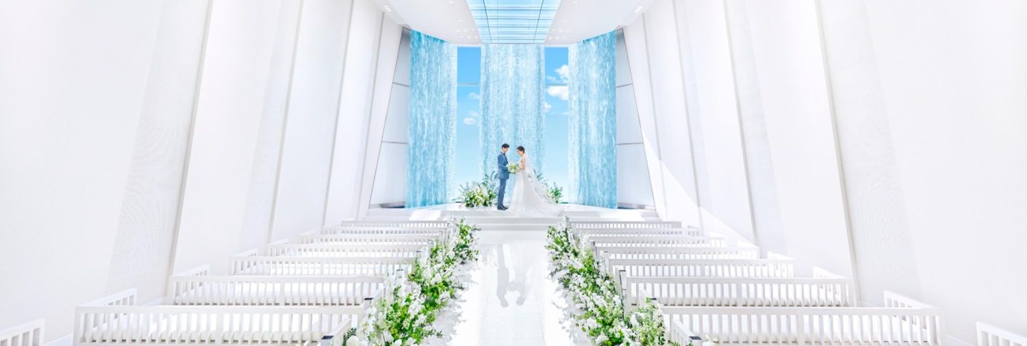 水音と光に包まれた純白のチャペル水音に癒される開放的で洗練された舞台
