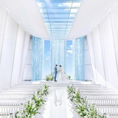 【天窓から自然光が降り注ぐ”光と水のチャペル”】天窓・祭壇の水のきらめきにより、光に包まれた空間に♪全天候型の大階段やフラワーシャワー、チャペルでの映像演出など、ゲストの皆様の記憶にも残る特別な一日を
