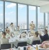 【1組貸切の絶景空間】パーティ会場はシアター式でどの席からも眺望やおふたりの姿を楽しめる造り。バーカウンターやソファ席など設備も充実しており、お食事と景色を楽しみながらゲストと近い距離で過ごせる空間。