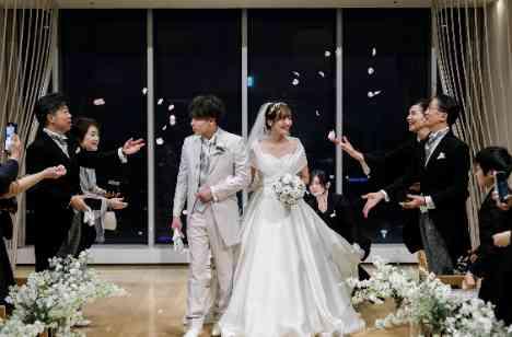 フラワーシャワーの起源は、古代ローマ時代といわれており、豊穣(ほうじょう)を象徴する小麦を放ち、ふたりの豊かな未来を願ってお祝いしていたようです。後に小麦からライス、そしてフラワーに変わっていきました。フラワーシャワーには、花の香りで周りを清め、幸せを妬む悪魔や災難からふたりを守り、幸せを願うという意味が込められているんですよ。写真映えも良く、笑顔のお二人がとっても魅力的な1枚が撮れましたね♡