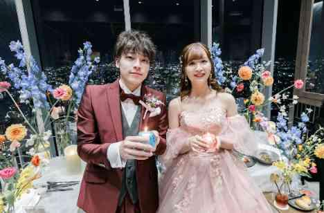 ゲストがお二人から火をもらい、テーブル内で火をまわすキャンドルリレーを行いました。キャンドルはその数だけ天使が舞い降りると言われており、幸せの象徴でもあります。お二人から感謝の気持ちを込めてその灯をゲストの方々へ引き継いでいくと、薄暗い会場の中に徐々に灯りが増えていく幻想的な空間に。全員のキャンドルに灯りがついたついたところで、一斉にその火を吹き、皆様の幸せへの願いを封じ込めていただきました♡
