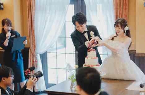 おふたりはゲストの皆様にゆったりと楽しんでいただくため広々とした披露宴会場「プレジール」をお選びいただきました 装飾はドレスや会場の雰囲気に合わせてこだわりのお花で彩り一体感のある素敵な会場となりました 演出ではケーキ"入刀"ではなく ケーキ"ドリップ"でご披露 おふたりでソースをかけて素敵なケーキを完成させる演出はゲストの方の印象にも残るおふたりらしい演出でした