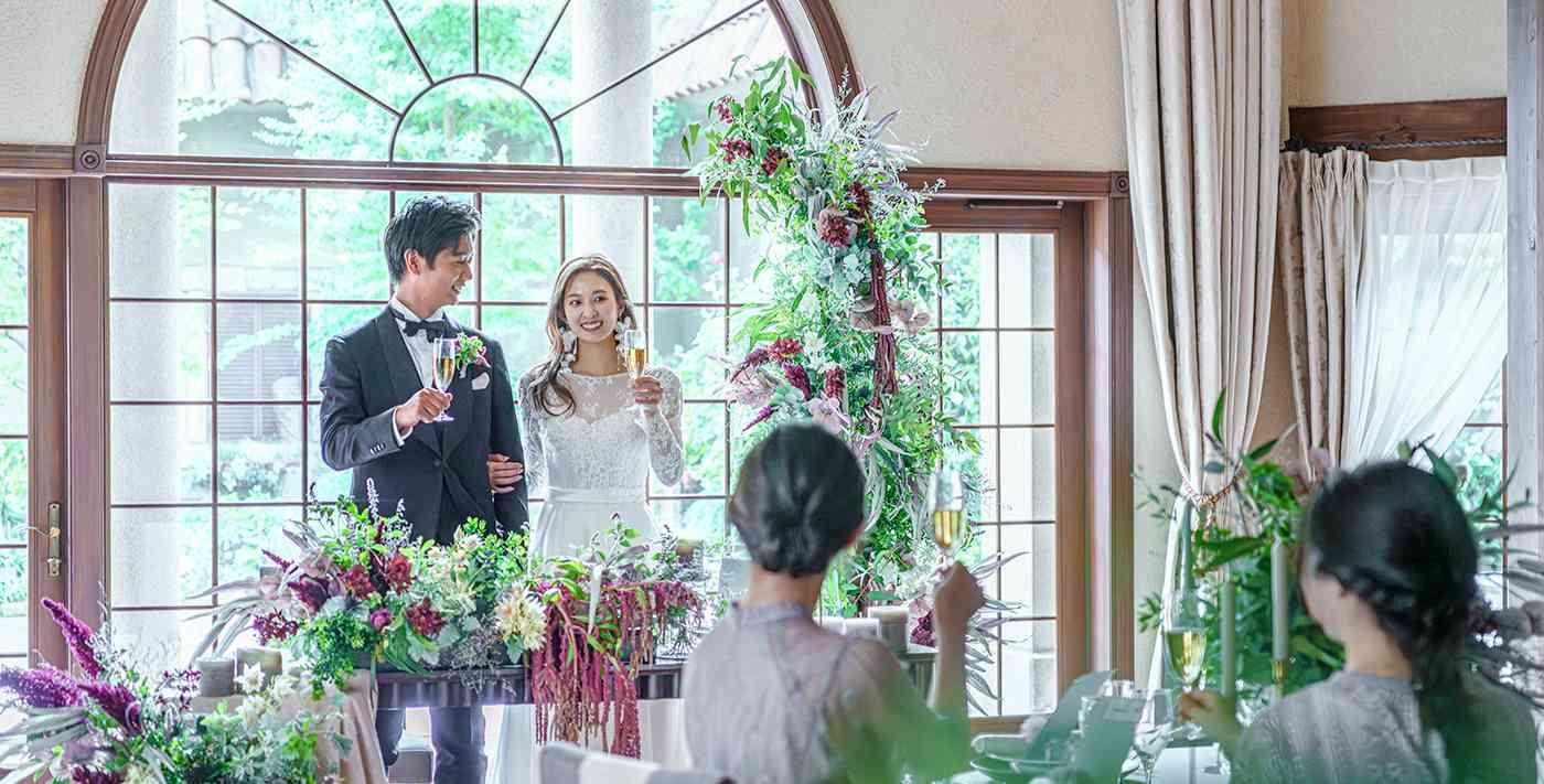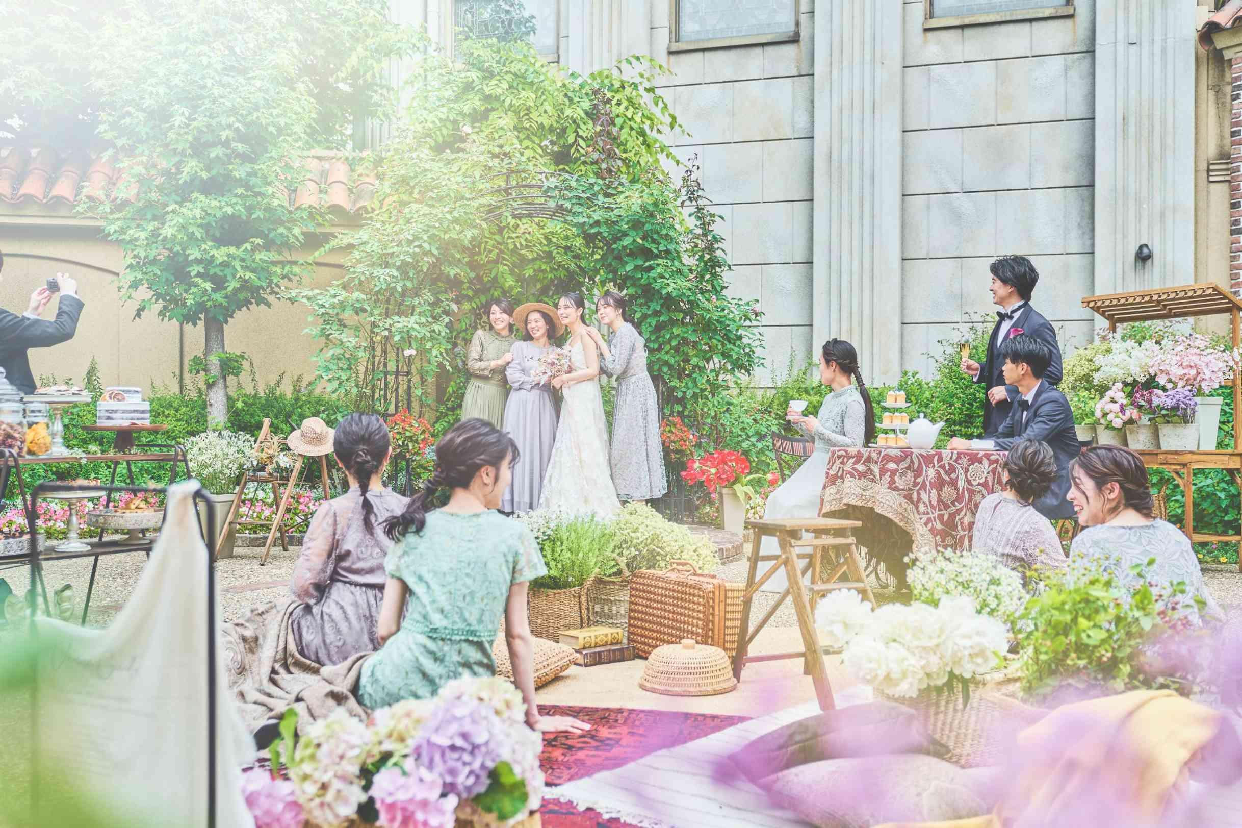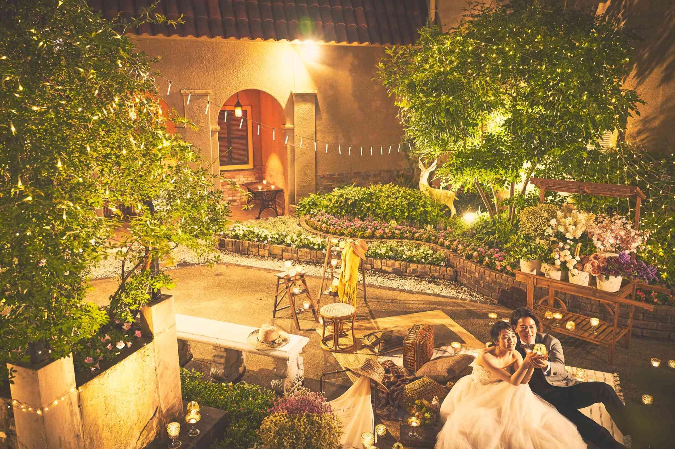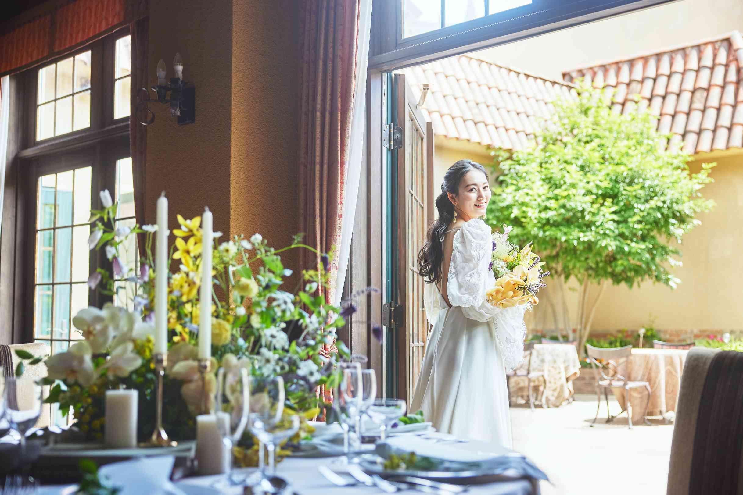 ヨーロッパの雰囲気が漂うプライベートガーデン付きの披露宴会場。ナチュラルテイスト、レンガ調テイスト、ゴージャステイスト、様々なテーマに基づいた会場からおふたりの好みで選んでいただけます。