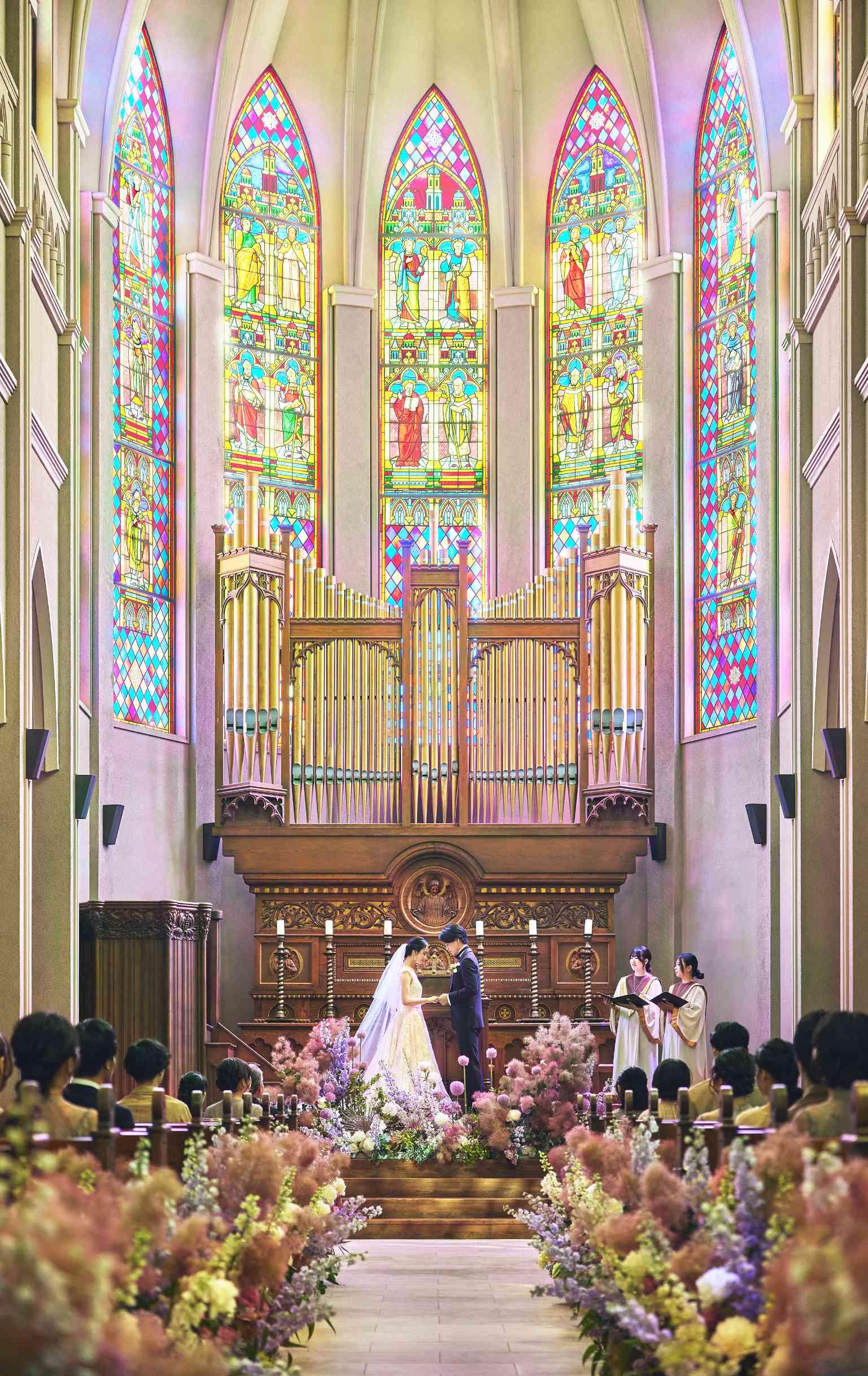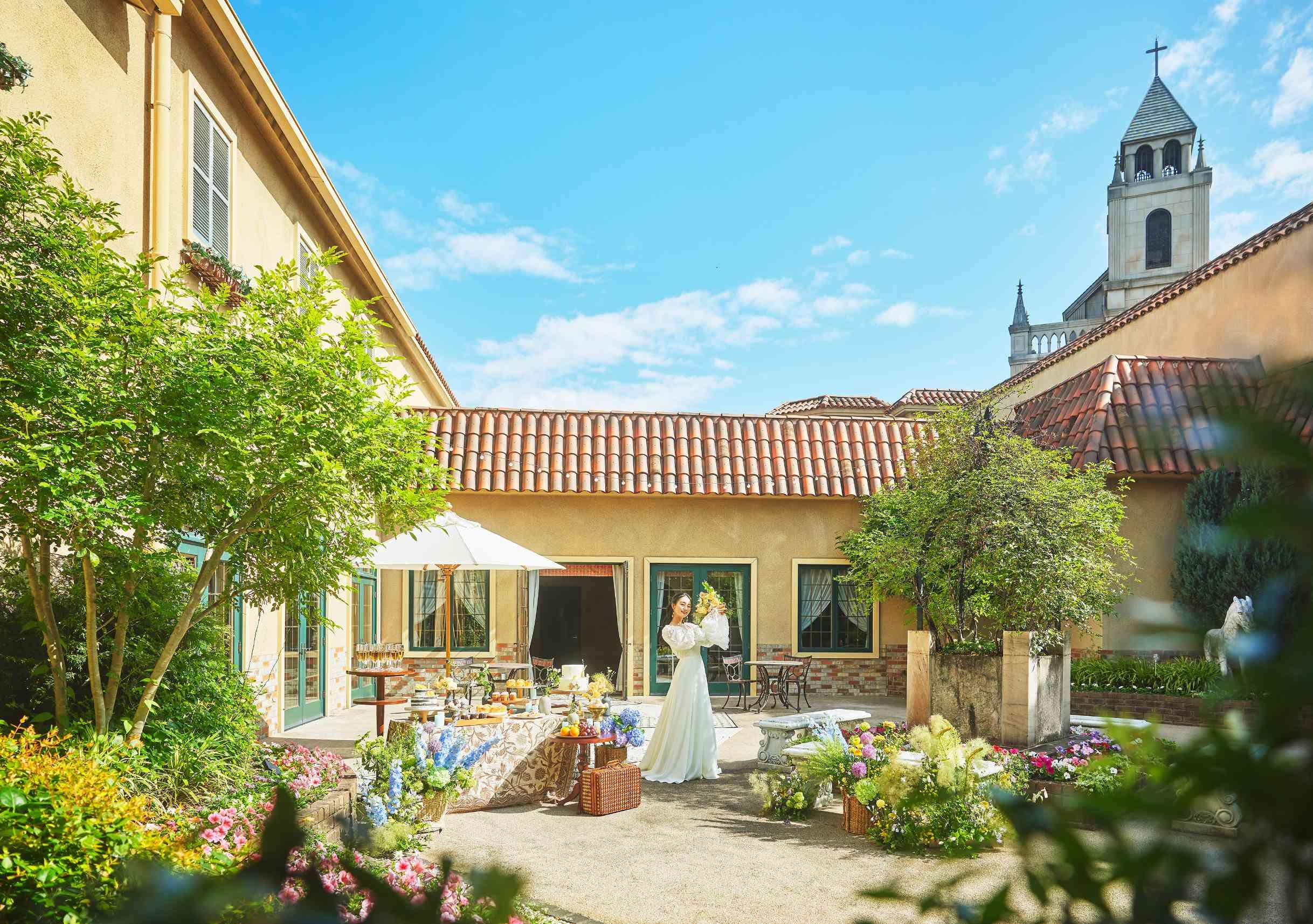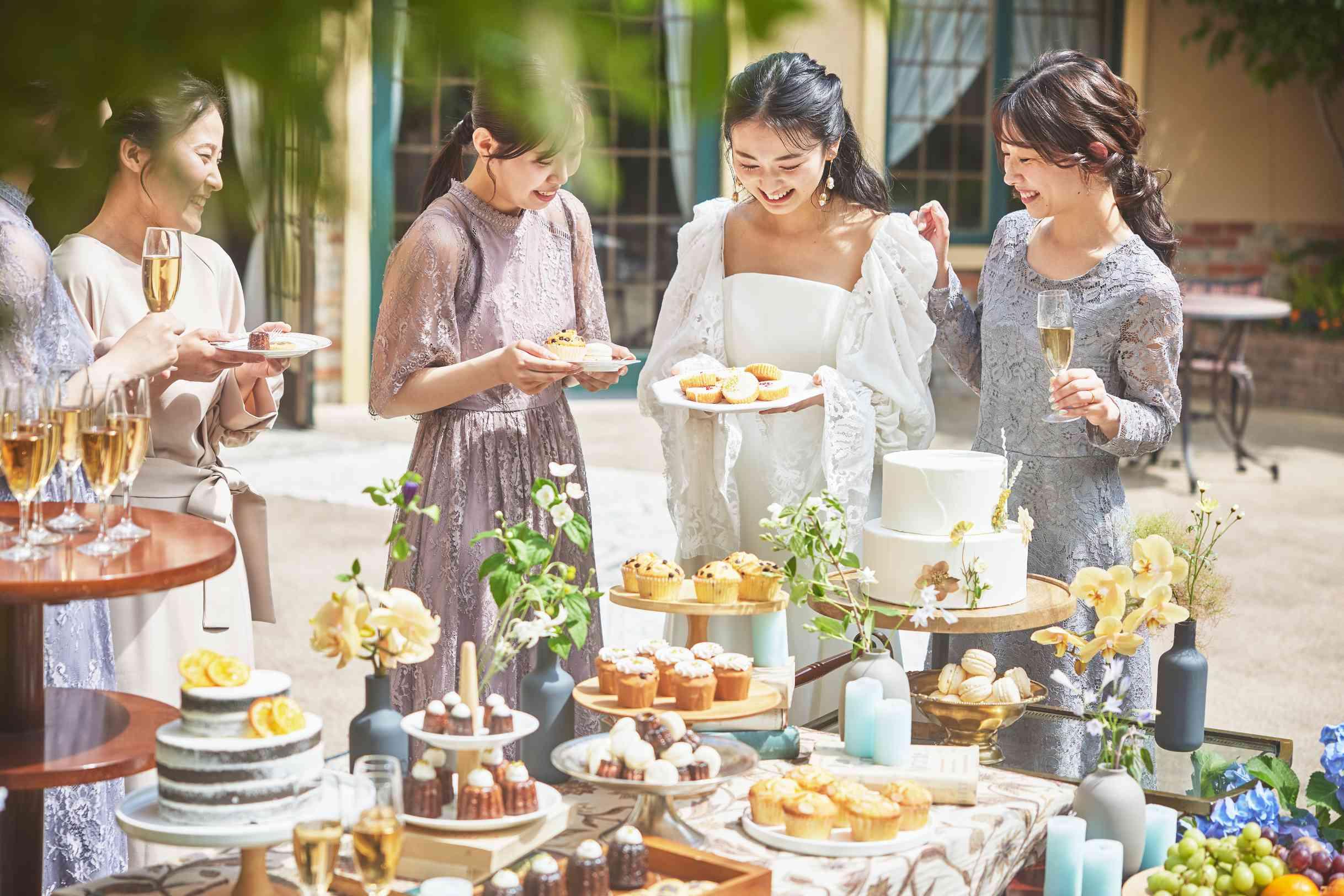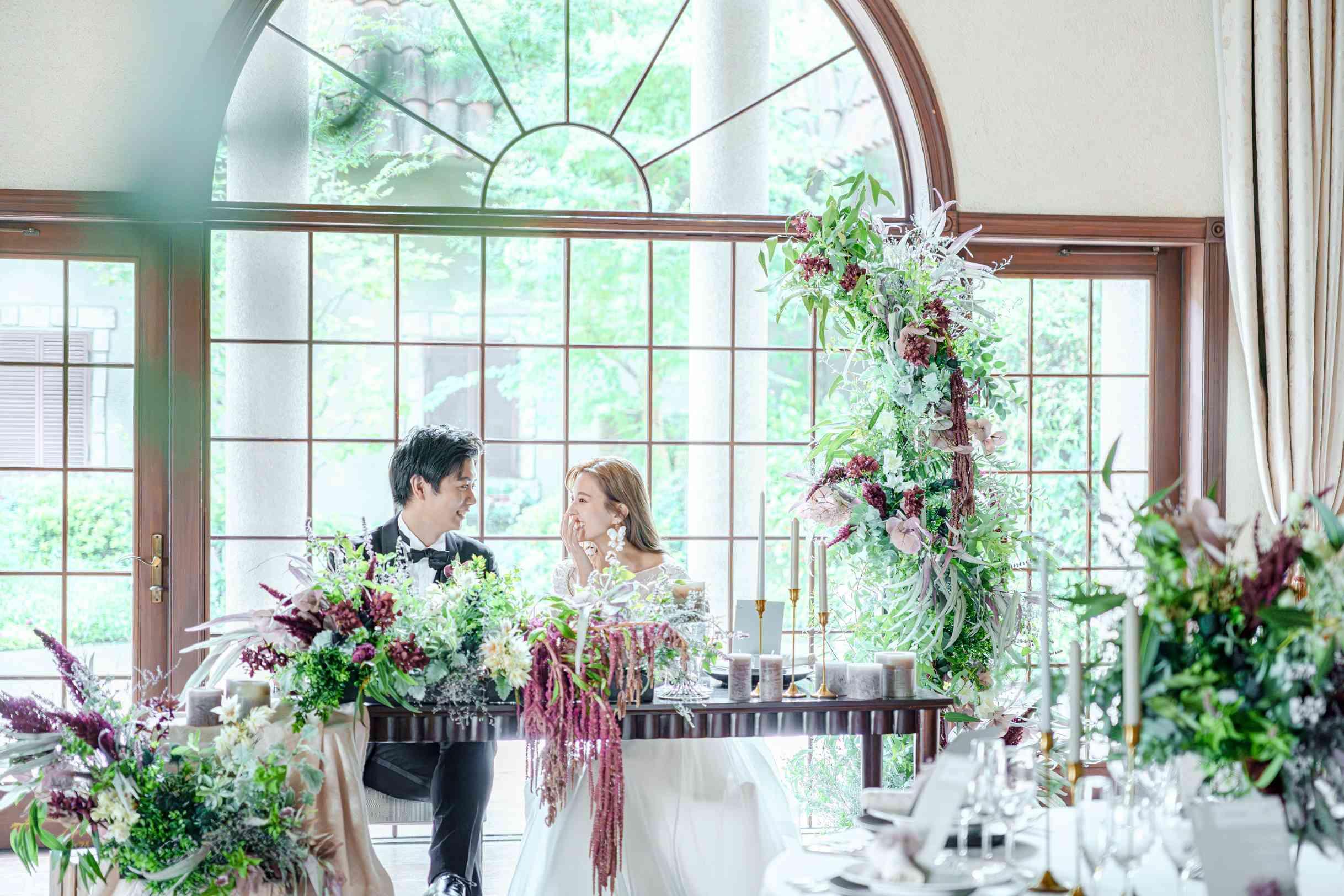 ヨーロッパの雰囲気が漂うプライベートガーデン付きの披露宴会場。ナチュラルテイスト、レンガ調テイスト、ゴージャステイスト、様々なテーマに基づいた会場からおふたりの好みで選んでいただけます。