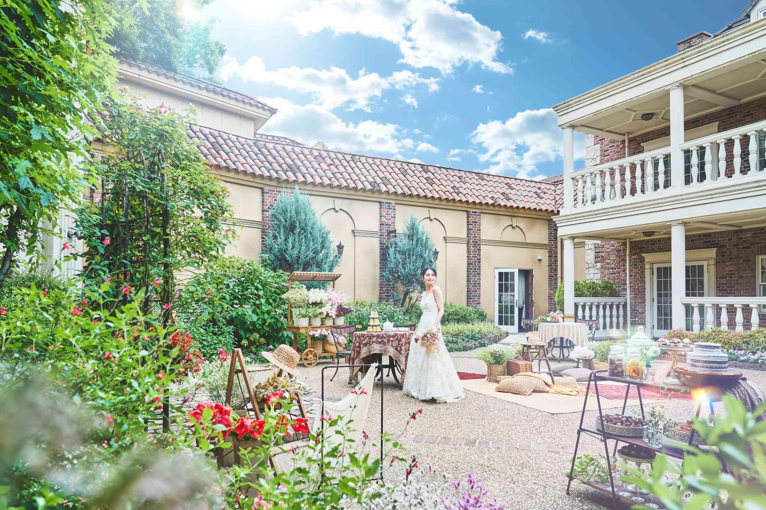 イギリスの海軍提督の邸宅をイメージ バラの咲く本格的なイングリッシュガーデンを備えた レンガ調で上質さのある英国スタイルのバンケット 収容人数:~80名