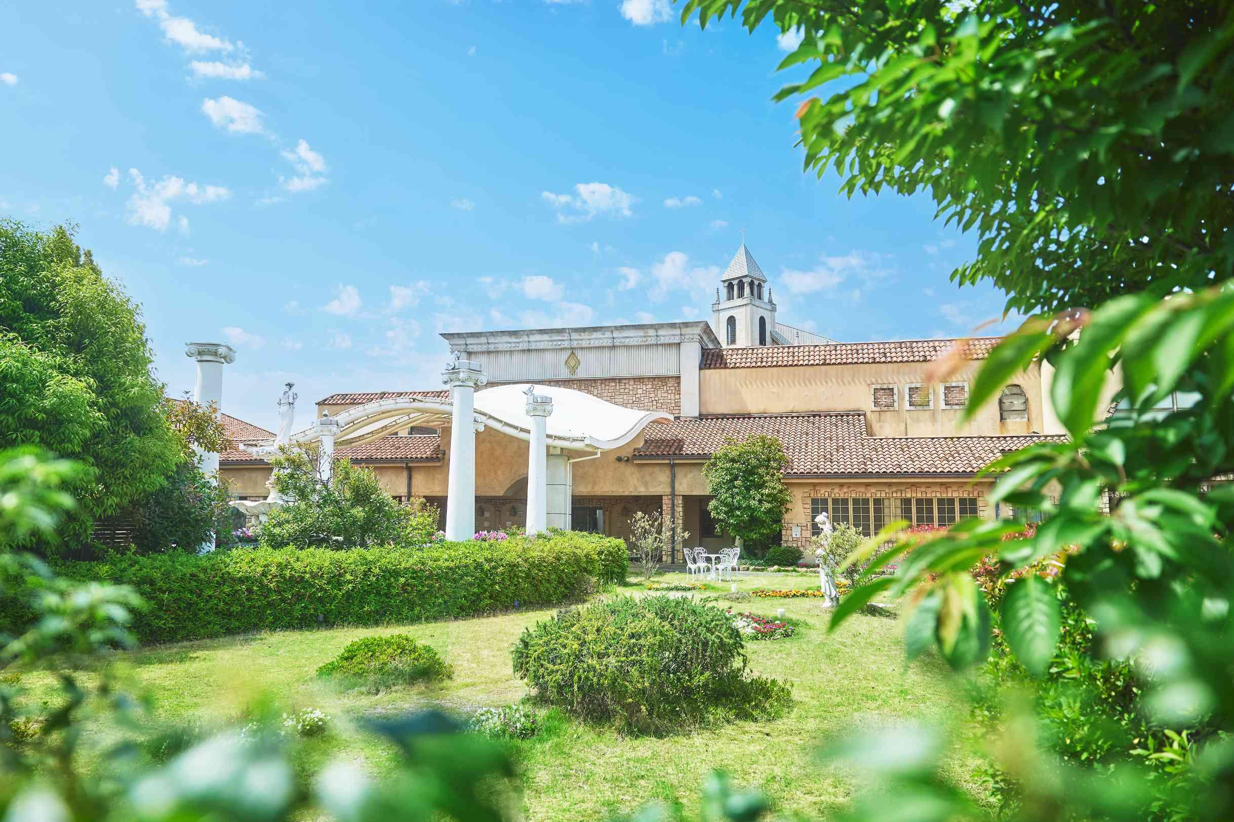 「貴族の狩猟のための別荘」をコンセプトにしたイタリアンスタイルな邸宅 収容人数最大128名の県内ゲストハウス型式場の中でも有数の広さを誇る 収容人数:~100名