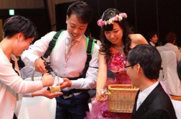 壮麗なシャンデリアと広々とした会場で行われたパーティー。新婦から新郎へサプライズの巨大スプーンのファーストバイトも大成功!新郎がビールサーバーを担ぎゲストに注ぐパフォーマンスなど、ゲストを飽きさせないふたりからの演出に、笑顔が絶えないパーティーとなりました。ゲストからも「こんな笑って楽しい結婚式は初めて!」という声が。